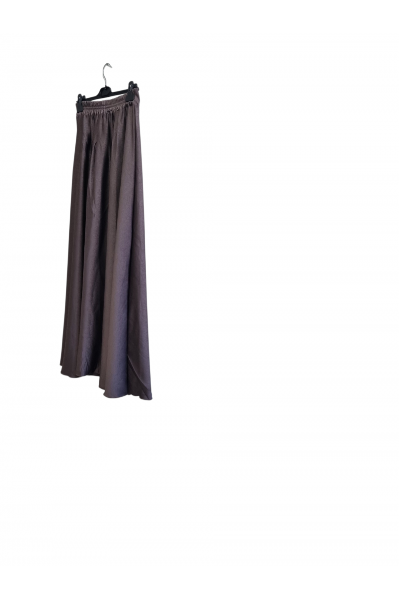 Jupe longue fluide en satin taupe