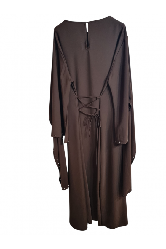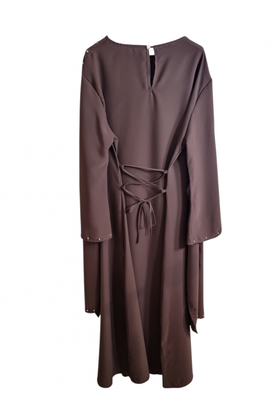 Robe Tunique Aysha Fendue Ceinturée Taupe Avec Anneau Doré