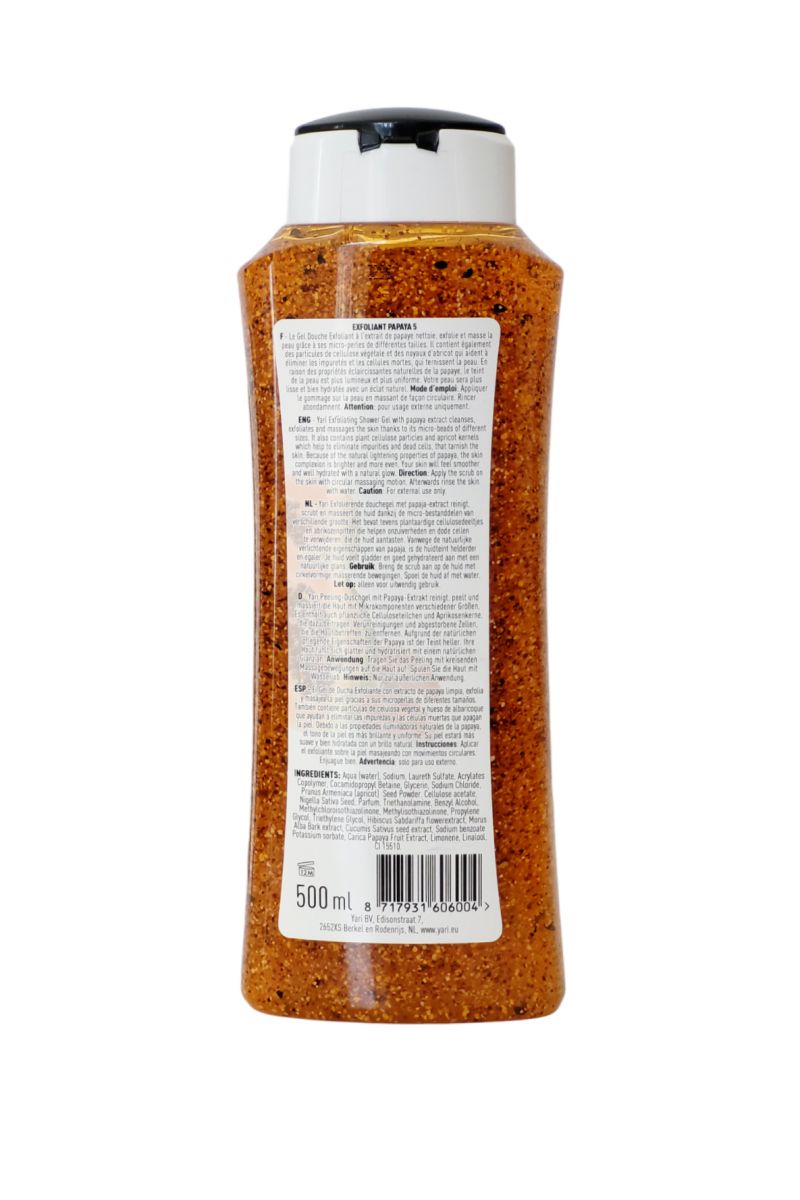 Le gel douche exfoliant à l'extrait de papaye nettoie, exfolie et masse la peau grâce à ses micro-perles de différentes tailles.