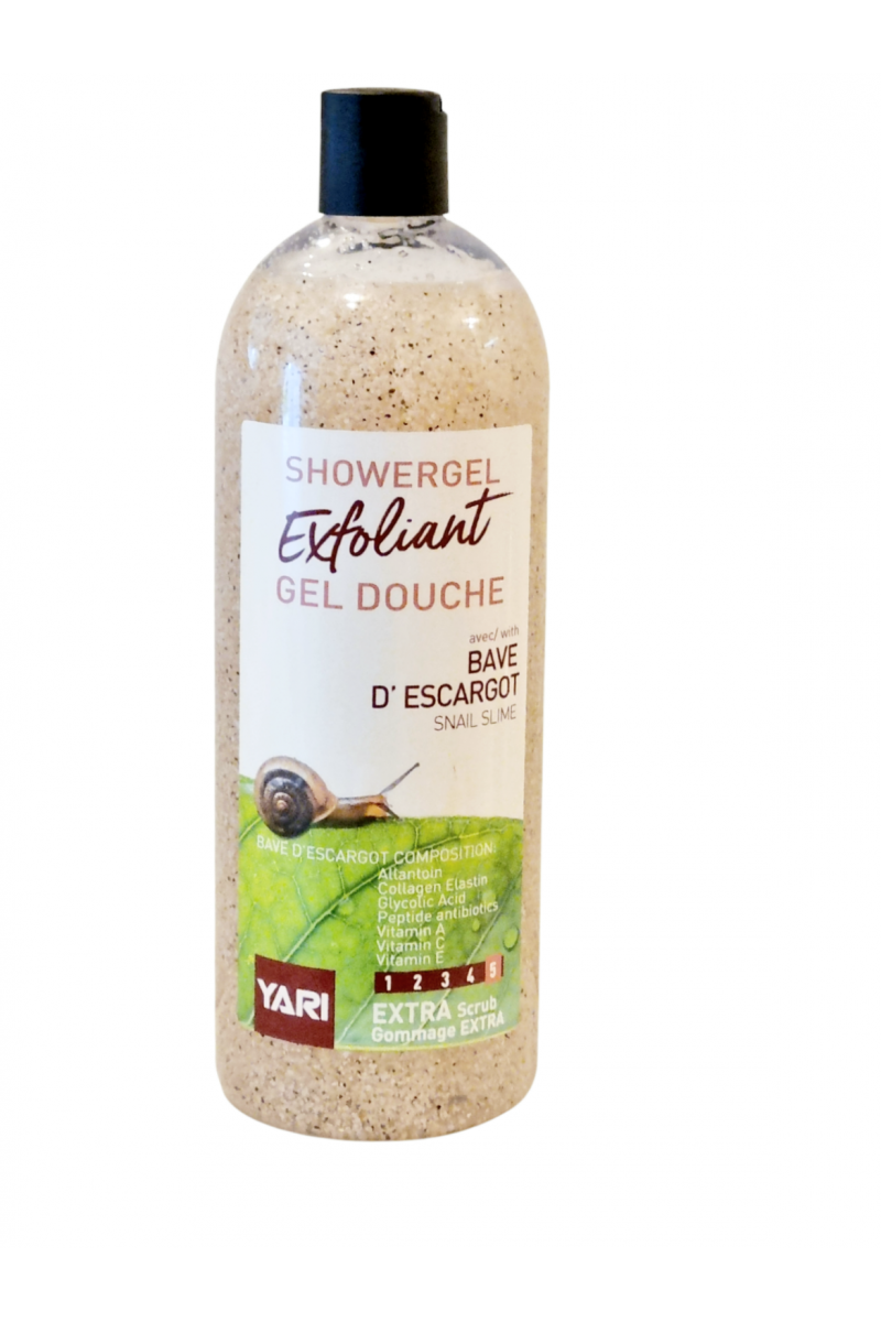 Le gel douche Gommant YARI à base d'escargot et de Vitamine C Exfolie et tonifie la peau grâce aux micro-billes tout en laissant un agréable parfum frais rafraîchissant. Il élimine les impuretés et cellules mortes, qui ternissent la peau, grâce à l'action des particules végétales de cellulose et de noyaux d'abricot.
