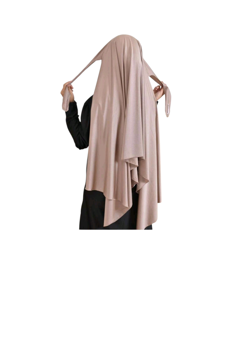 Hijab prêt à nouer au design asymétrique (côté droit plus long), sans bonnet ni épingle, infroissable, opaque, doux et facile à entretenir.