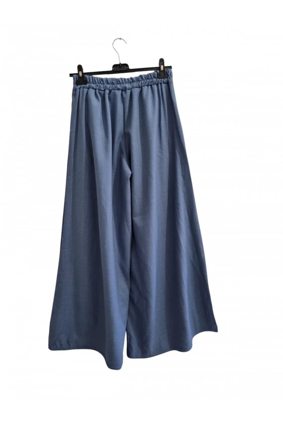 Pantalon Large Fluide Elégant Bleu