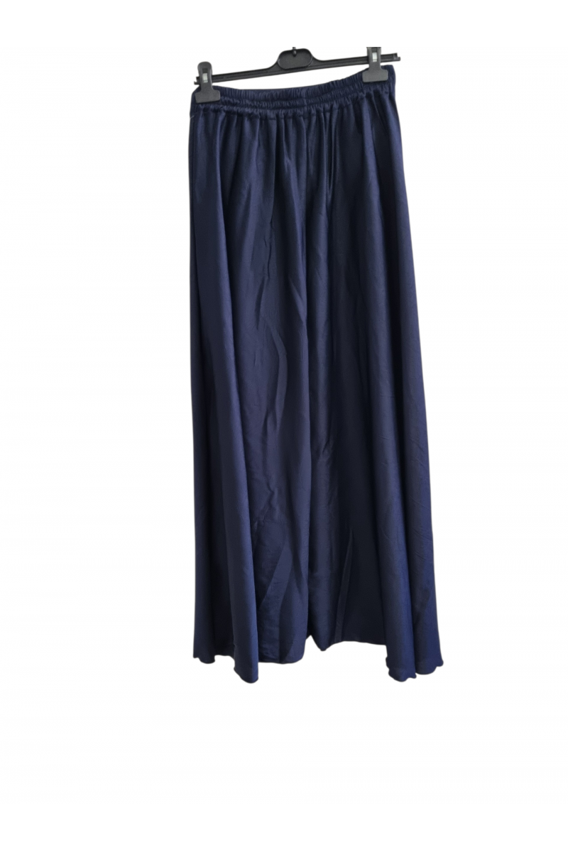 Jupe Longue Evasée Fluide En Satin Bleu Marine